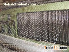 Gabion basket is manufactured from 8x10 double twisted hexagonal woven steel wire mesh, as per ASTM A975-97 Gabion basket is filled with stones at the project site to form flexible, permeable, monolithic structures such as retaining walls, channel linings, and weirs for erosion control projects. The steel wire used in the manufacture of the gabion is heavily Galfan (zinc-5% aluminum-mischmetal [Zn-5 Al-MM] alloy) coated soft temper steel. A PVC coating is then applied to provide additional protection for use in polluted, contaminated or aggressive environments: in salt, fresh water, acid soil or wherever the risk of corrosion is present. The PVC coating has a nominal thickness of 0.02 in. (0.50 mm). The gabion basket is divided into cells by diaphragms positioned at approximately 3 ft (0.9m) centers. To reinforce the structure, all mesh panel edges are selvedged with a wire having a greater diameter. Gabion shall be manufactured and shipped with all components mechanically connected at the production facility.